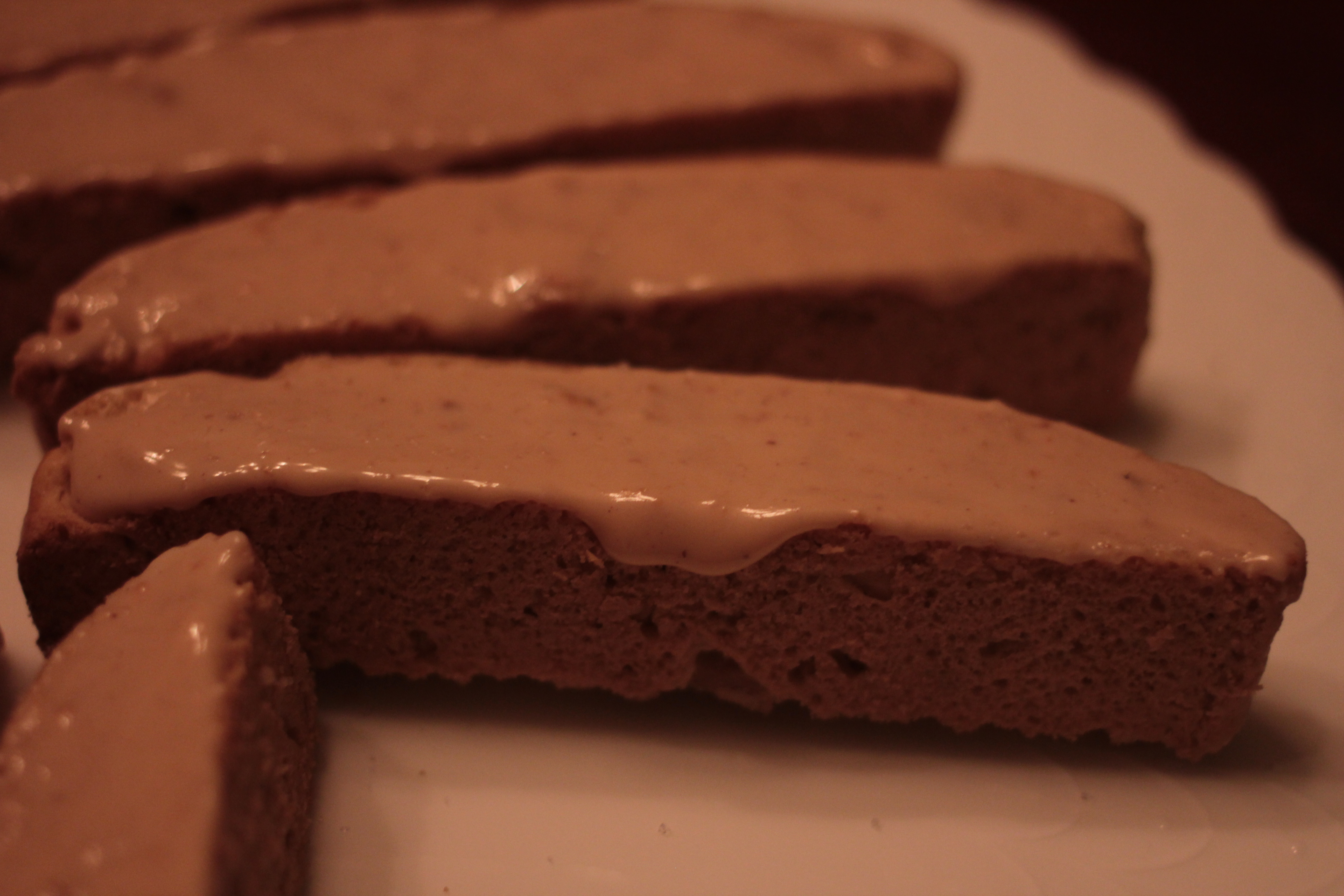 So, the first cookie I tried was anise with vanilla flavoring and almonds; it was good. Then I tried it with macadamia nuts and it was even better. Then I put white chocolate on the outside and it reached perfection.